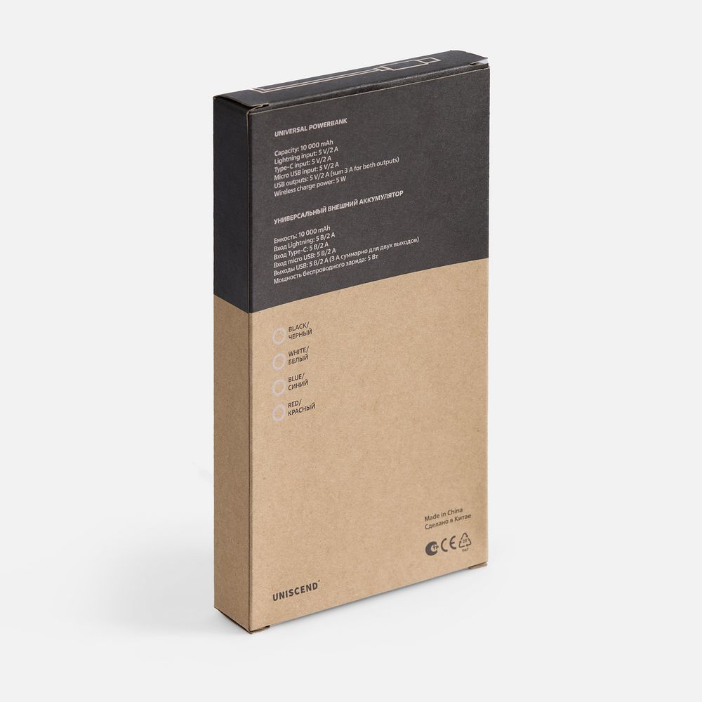 Компактный аккумулятор c функцией беспроводного заряда и тремя типами зарядных портов: Apple Lightning, USB Type-C и micro USB. Позволит весь день пользоваться и планшетом на iOS, Android или Windows, и смартфоном. Может заряжаться как прилагаемым зарядным кабелем, так и штатным кабелем мобильного устройства.