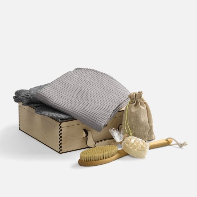 Банный набор Great Heat Therapy позволит полностью перезагрузиться и получить максимум пользы от похода в баню или сауну. Щетка для сухого массажа поможет подготовить кожу и удалить все ороговевшие клетки, а банная шапочка, коврик и рукавица сделают процесс парения комфортным и безопасным. Добавьте контрастный душ с массажным мылом и почувствуйте себя полностью обновленным! Приятно завершить ритуал можно в мягком вафельном килте за чашечкой ароматного чая.