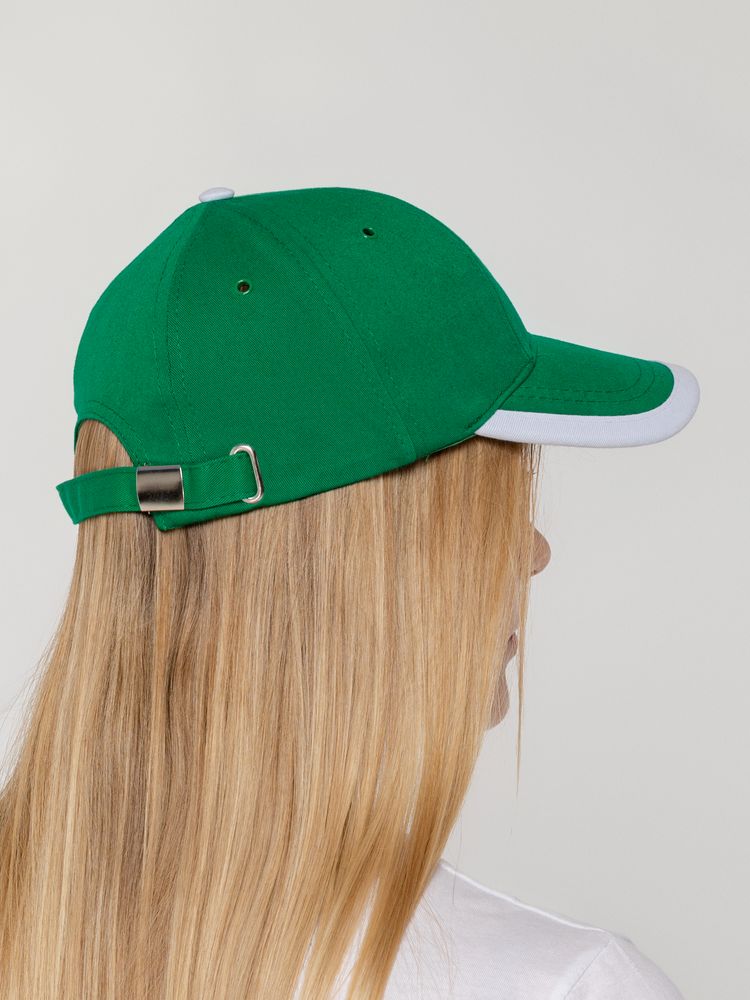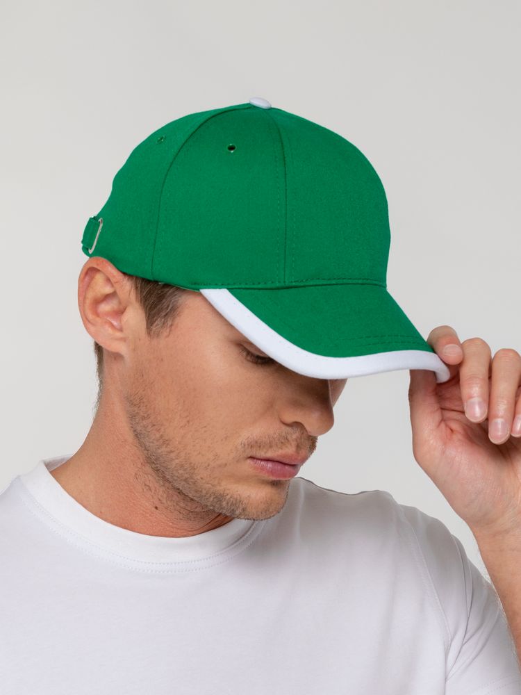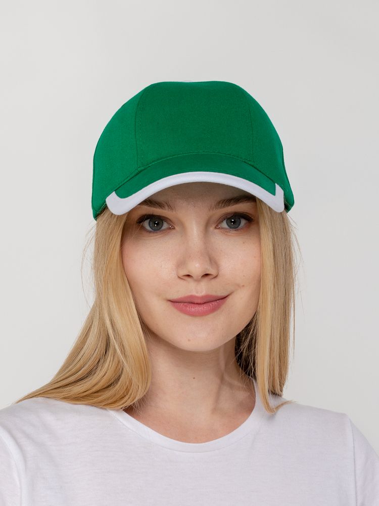 Удобная модель с шестью клиньями без шва на лбу. Широкий контрастный кант на козырьке.
