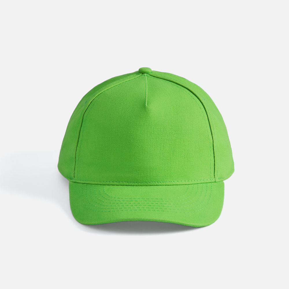 Модель бейсболки с 5-ю клиньями без лобового шва из плотного чесаного хлопка.