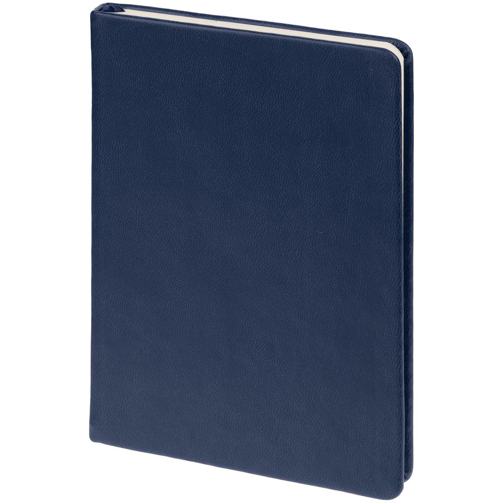 Твердая обложка из материала Latte, синий, ляссе в цвет обложки.