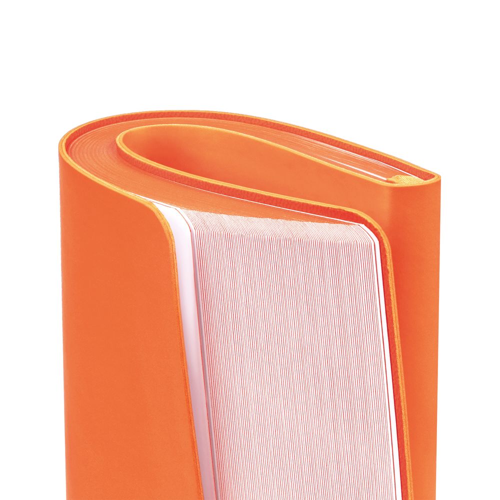Блокнот с гибкой обложкой, выполнен из материала Soft Touch Pearl, оранжевый ОО и Latte, оранжевый ОО (внутренний материал).