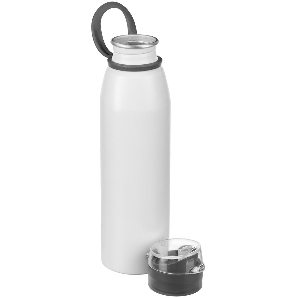 Легкая бутылка для спорта с откидной крышкой и силиконовой петлей для удобной транспортировки.