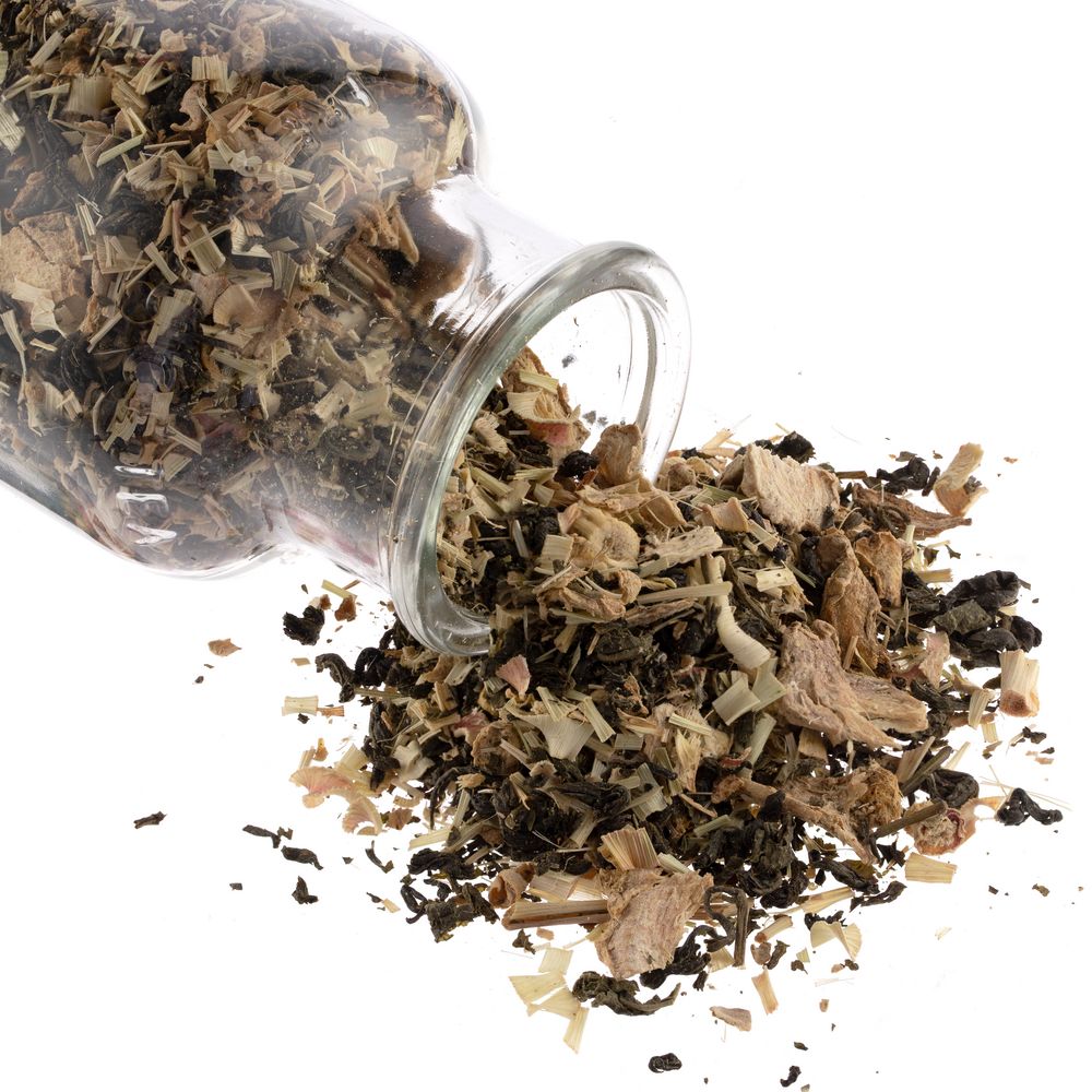 Состав: чай зеленый байховый крупнолистовой, кусочки имбиря, сок имбиря, лемонграсс.