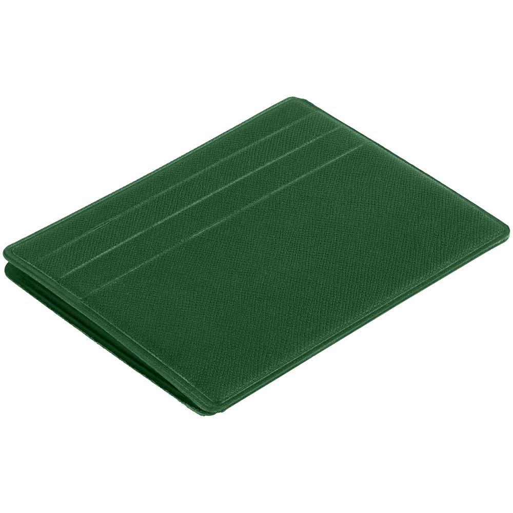 Чехол для карточек из искусственного материала, имитирующего сафьяновую кожу, с шестью отделениями для кредитных карт и одним — для сложенных купюр.