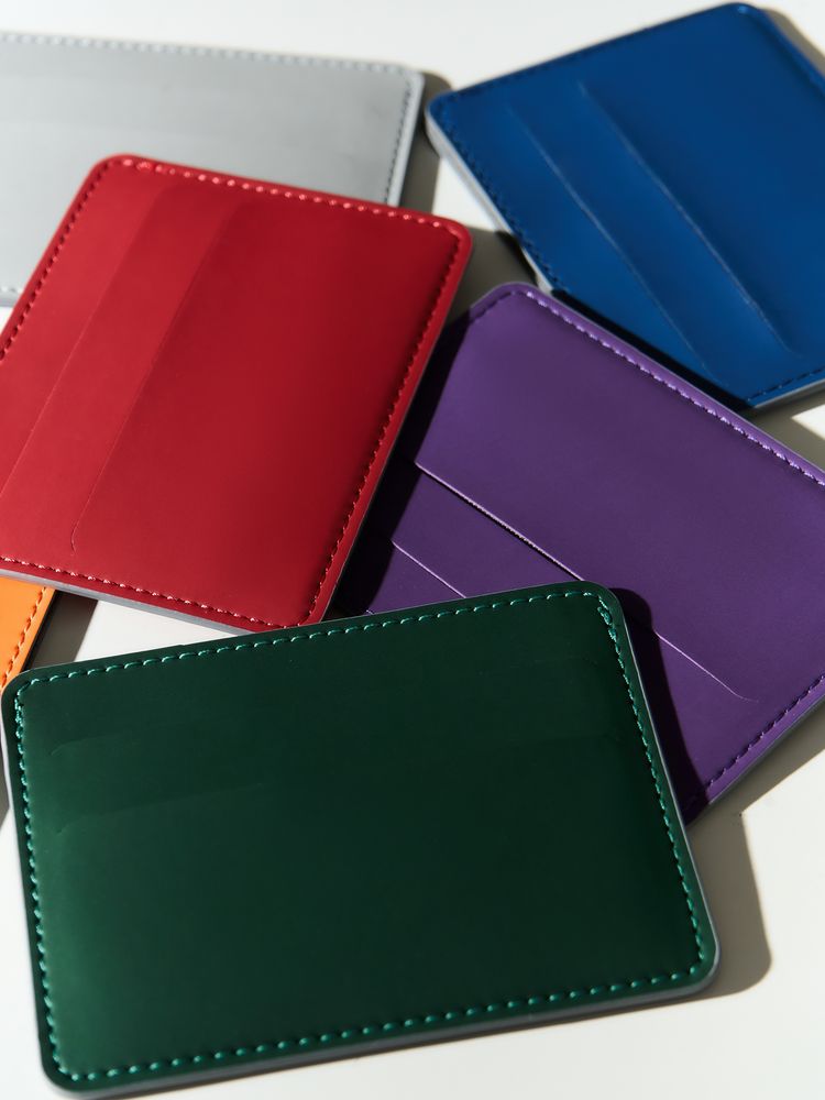 4 отделения для кредитных карт и одно для сложенных купюр.