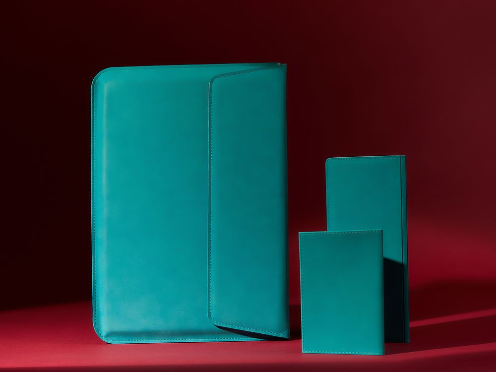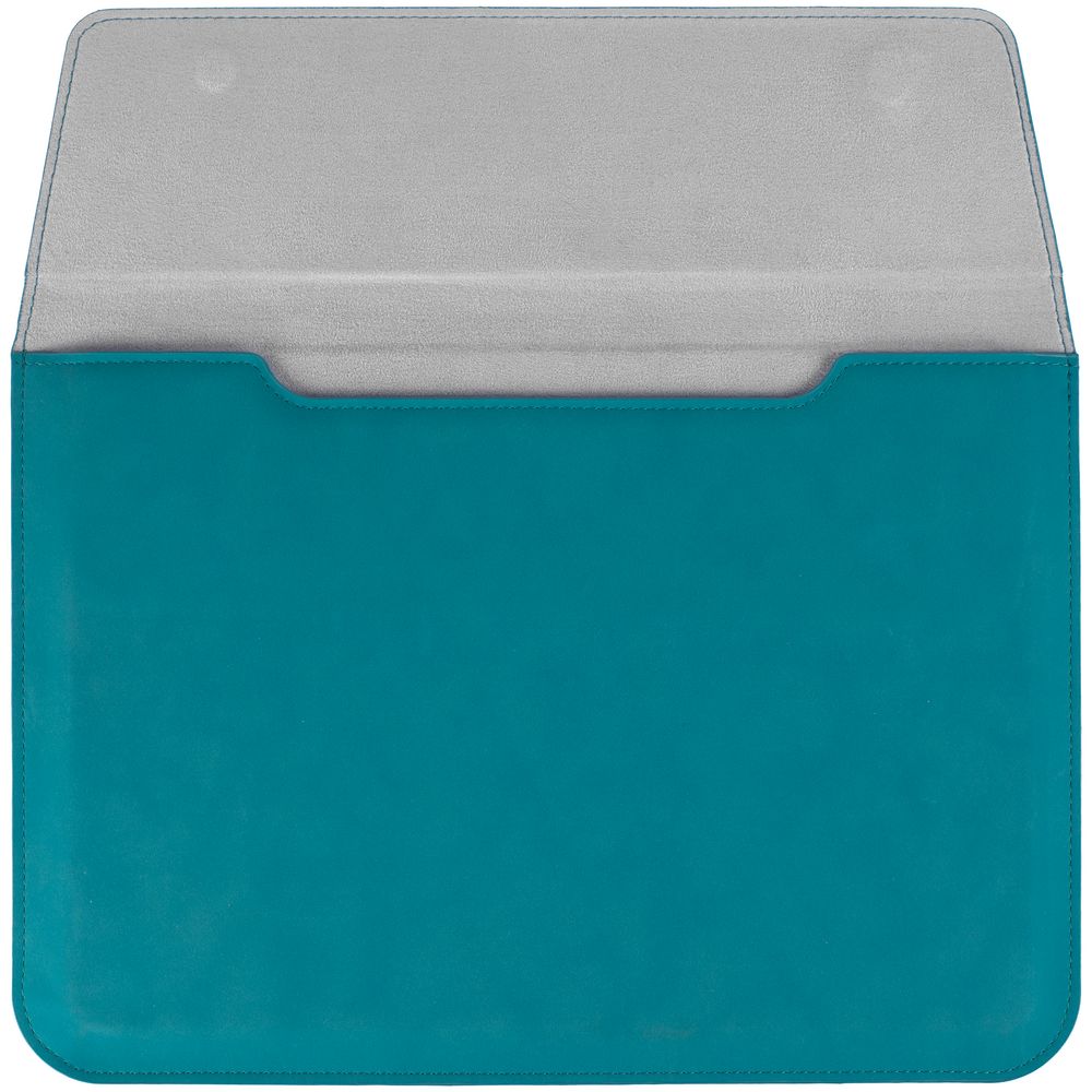 Чехол для ноутбука с диагональю до 13″, выполнен из материала Nubuck, цвет морской волны II, внутри серый велюр.