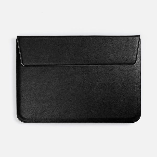 Чехол для ноутбука с диагональю до 15,6 выполнен из материала Petrus, черного цвета, дополнен окрашенным срезом края серого цвета.