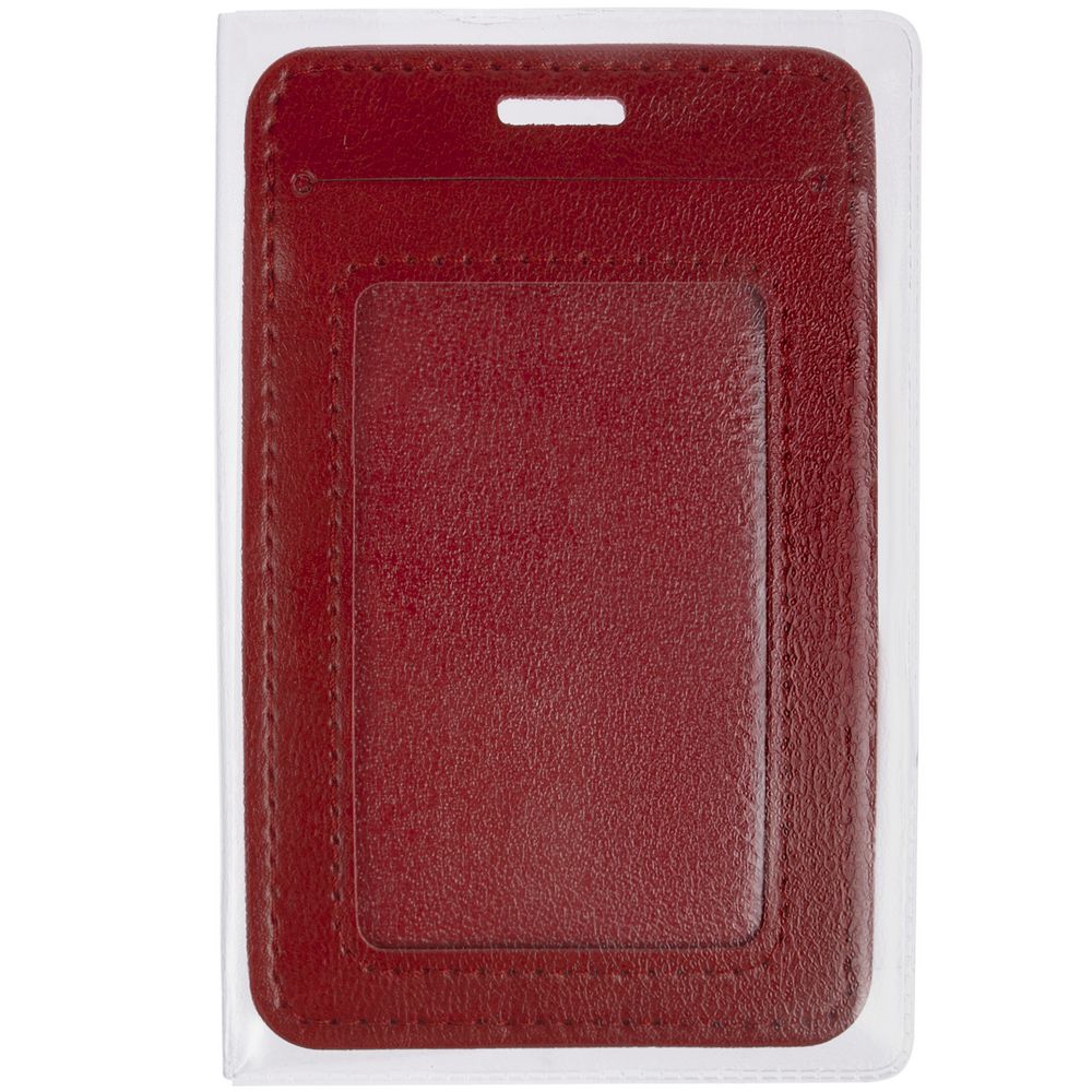 Чехол для карточки с пластиковым окошком. На задней части чехла есть карман для второй карточки или визитки.