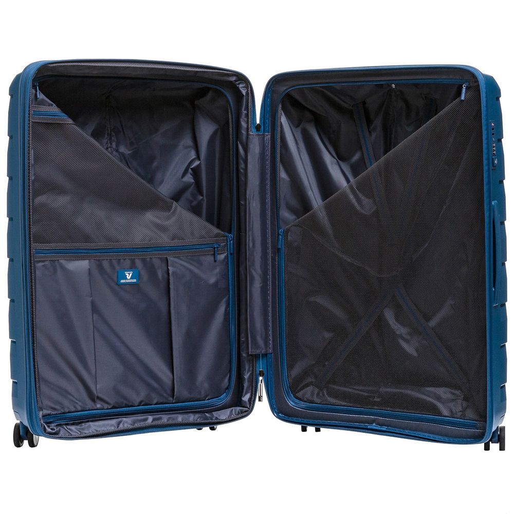 • Чемодан с 2 отделениями: одно из них с фиксирующими ремнями и сетчатой шторкой на молнии, второе — с разделителем на молнии