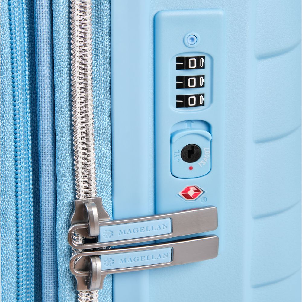 • Блок крепления колеса встроен в корпус чемодана, что обеспечивает лучшую устойчивость к внешнему воздействию