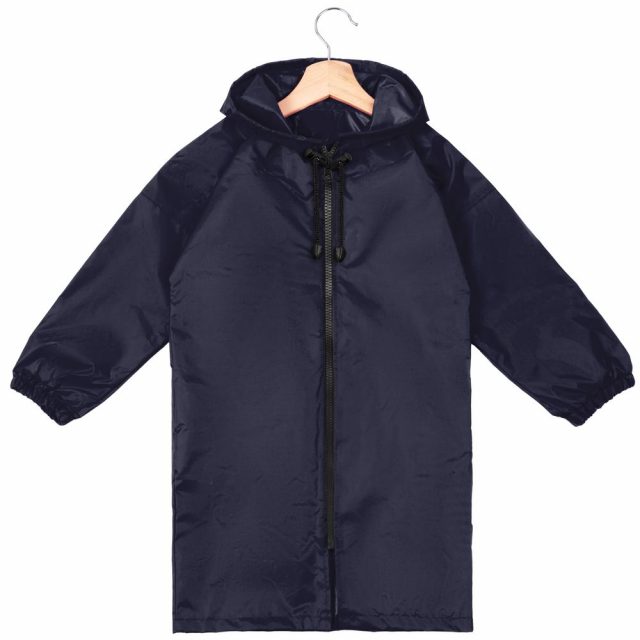 Детский дождевик на молнии из таффеты с влагозащитным покрытием. Складывается в мешочек — удобно брать с собой.