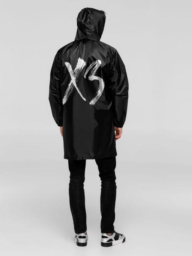 Плащ-дождевик из ткани таффета на молнии с капюшоном. Складывается в мешочек — удобно брать с собой.