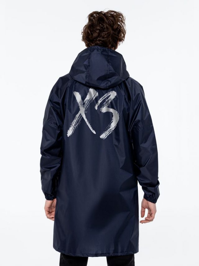 Плащ-дождевик из ткани таффета на молнии с капюшоном. Складывается в мешочек — удобно брать с собой.