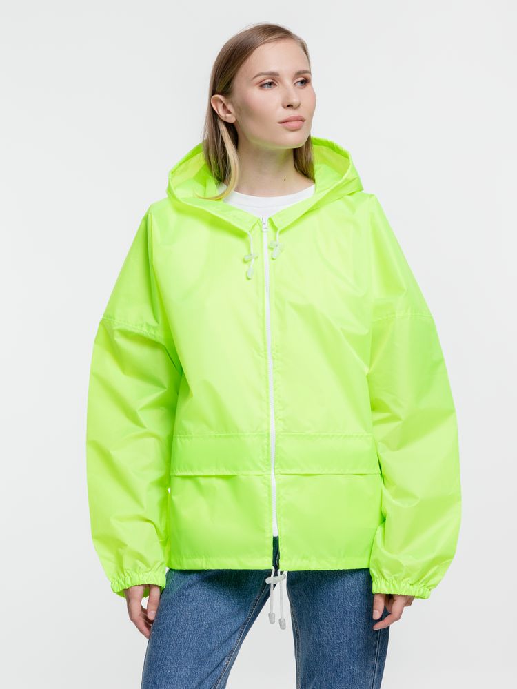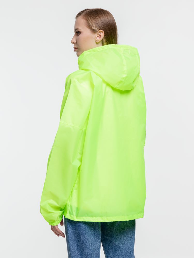 Укороченный дождевик свободного кроя из ткани таффета с влагозащитным покрытием. Складывается в мешочек — удобно брать с собой.