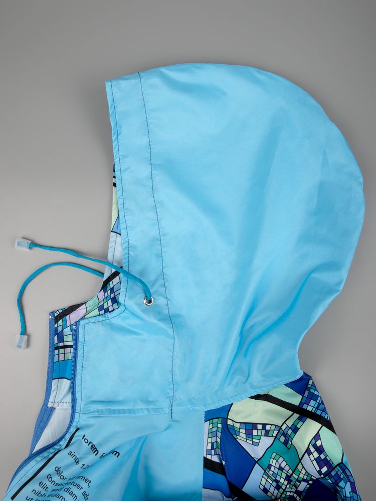 Полноцветная печать методом сублимации с лицевой стороны дождевика и мешка для хранения входит в стоимость изделия.