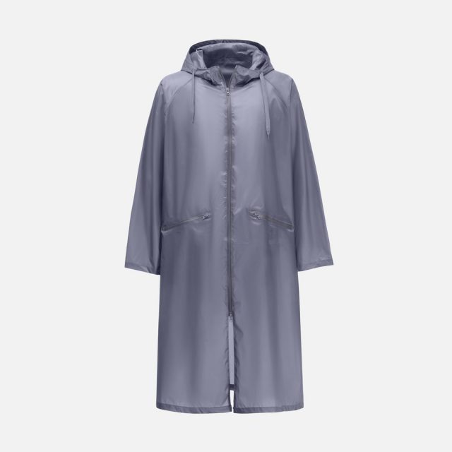 Плащ-дождевик на молнии с капюшоном из ткани таффета с полиуретановой пропиткой для защиты от сильного дождя.