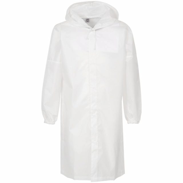 Плащ-дождевик из ткани таффета на кнопках с капюшоном.