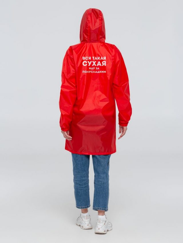 Плащ-дождевик из ткани таффета на молнии с капюшоном. Складывается в мешочек — удобно брать с собой.
