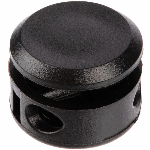 Для установки необходимо нажать на кнопку фиксатора и пропустить шнур через отверстие. Подходит для круглых шнуров и резинок диаметром до 0,5 см.