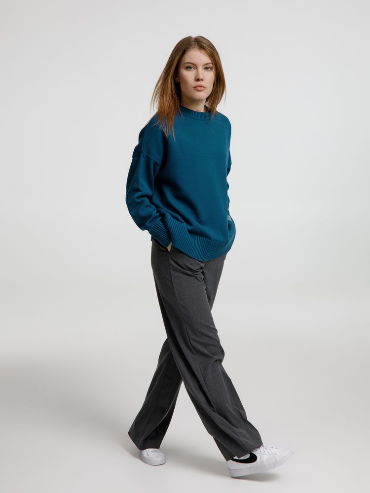 Модное прочтение базовой модели джемпера на стыке классики и стритвира — уверенное заявление в пользу комфорта и эстетики. Удобная горловина на резинке, сужающиеся к низу рукава и спущенное плечо делают оверсайз модель Stated универсальной в плане стиля: сочетая джемпер с более спокойной по цветам и фасону базой, легко создать расслабленный и трендовый силуэт.
