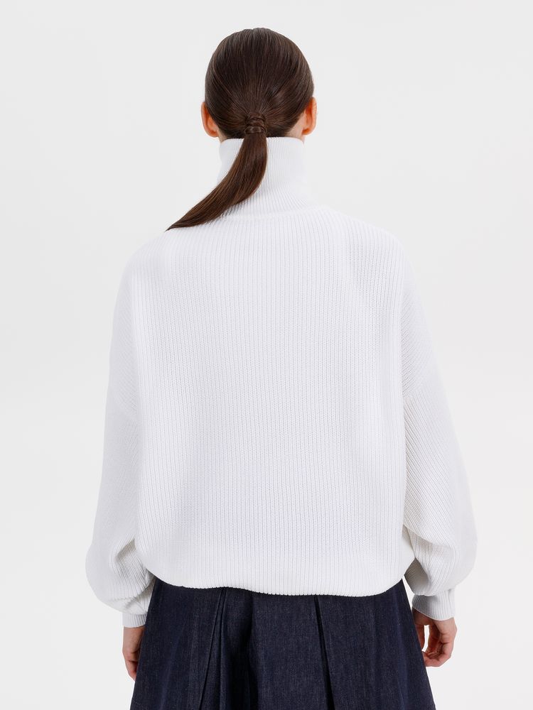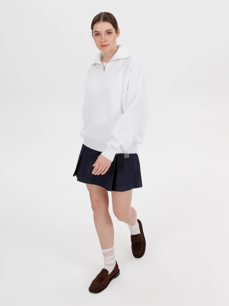 Siluetti Birne — плотный джемпер фактурной вязки со спущенной линией плеча позволит добавить в силуэт мягких линий и ненавязчивого объема, а также создать современный модный образ в лаконичном актуальном стиле, отдав при этом дань беспроигрышной классике. Дополнительным акцентом служит высокая горловина на молнии, а широкая резинка на рукавах и по нижнему краю изделия гарантирует максимальный комфорт.