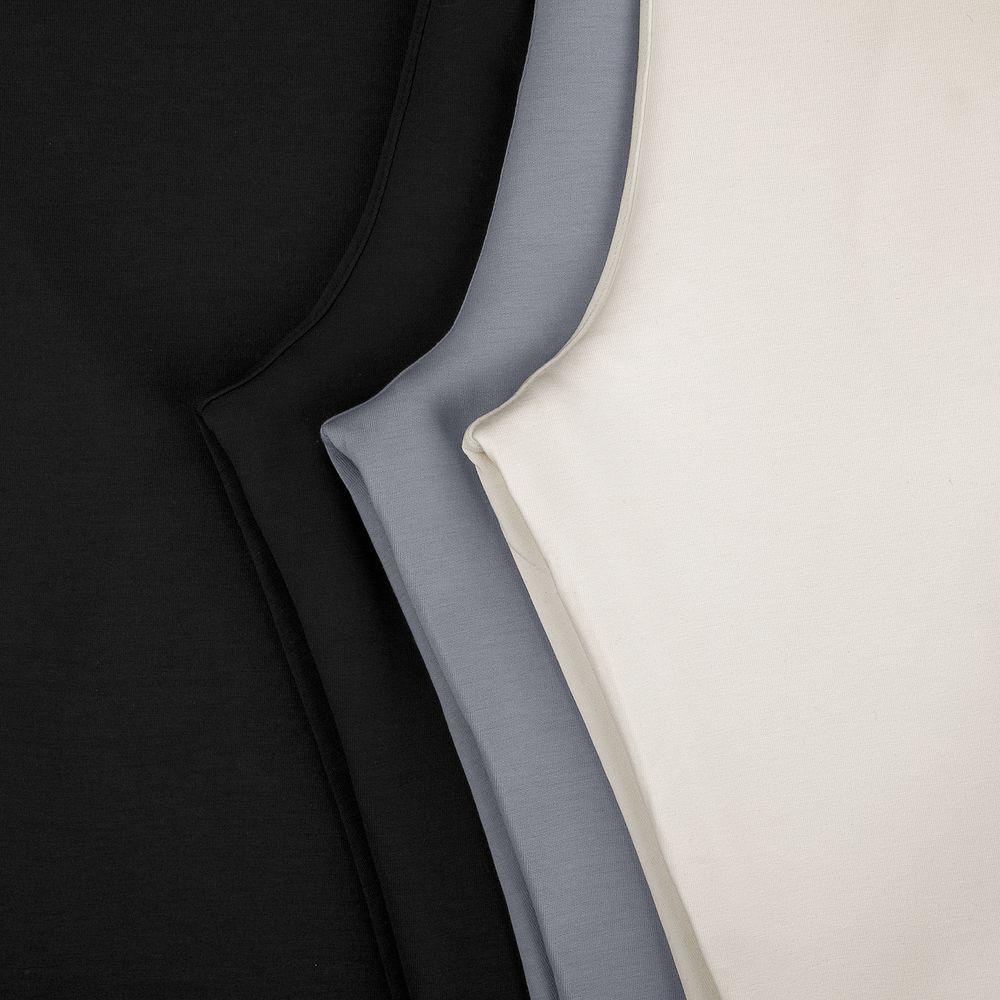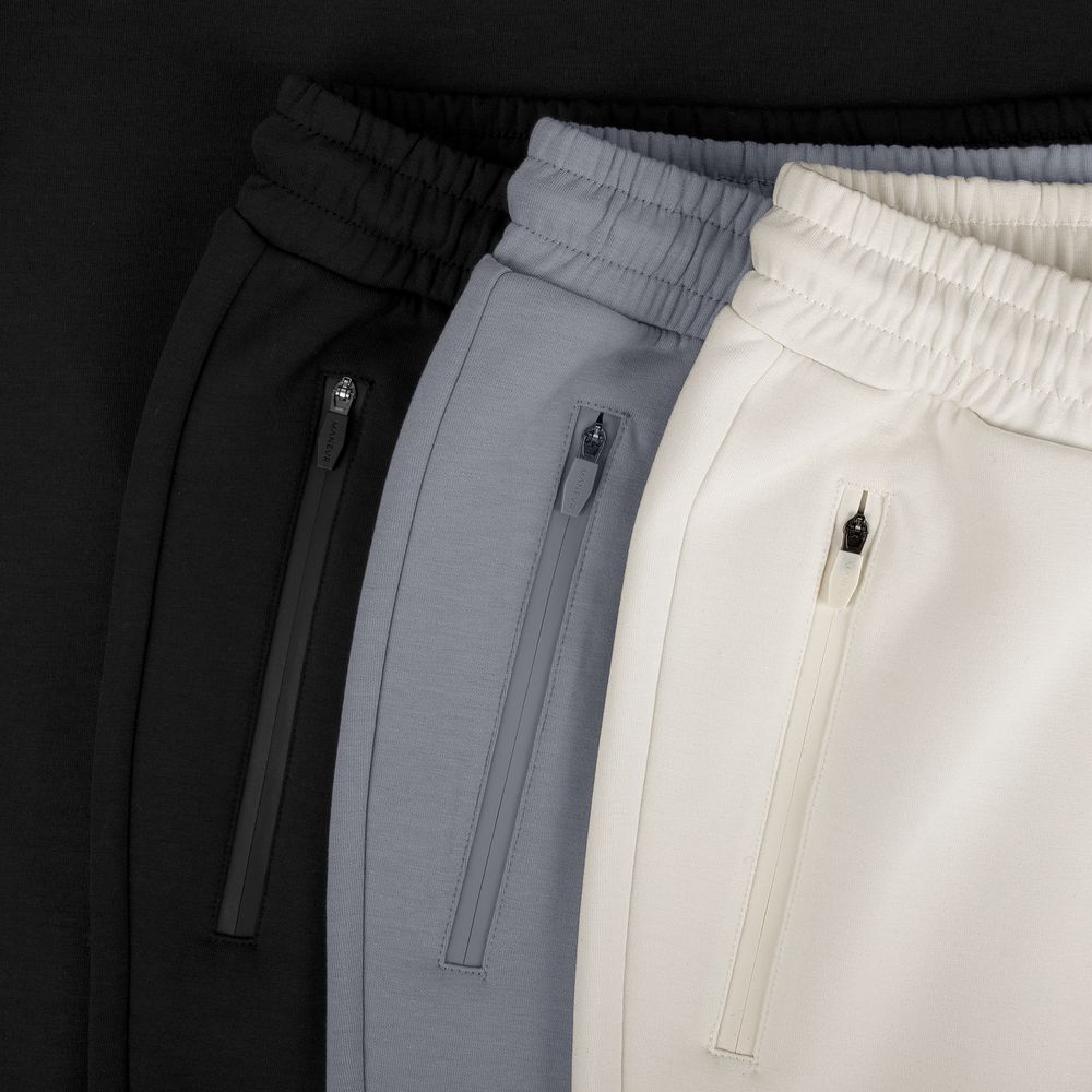 Коллекция текстиля Manevr Sport с продуманным анатомическим кроем выполнена из высокотехнологичного трехслойного материала, известного как ткань скуба или трикотажный неопрен, в самом центре которого спрятаны объемные нити текстурированного полиэстера.