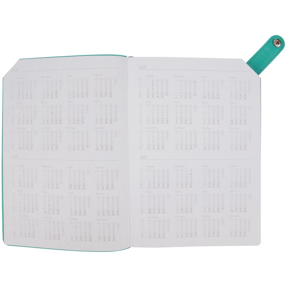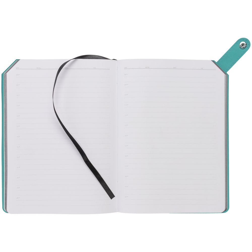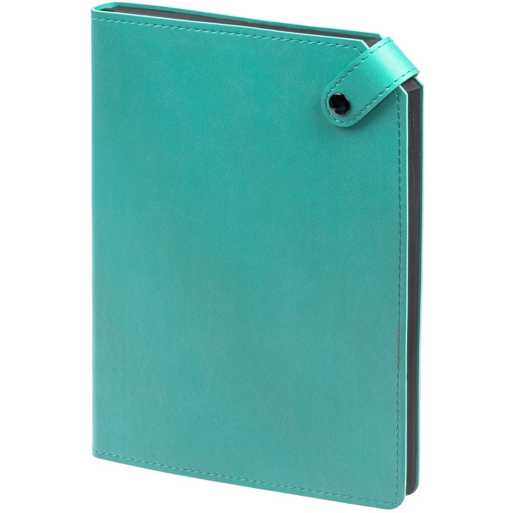 Ежедневник с гибкой обложкой и тонированным обрезом. Выполнен из материала Latte, морская волна II, дополнен черным ляссе.