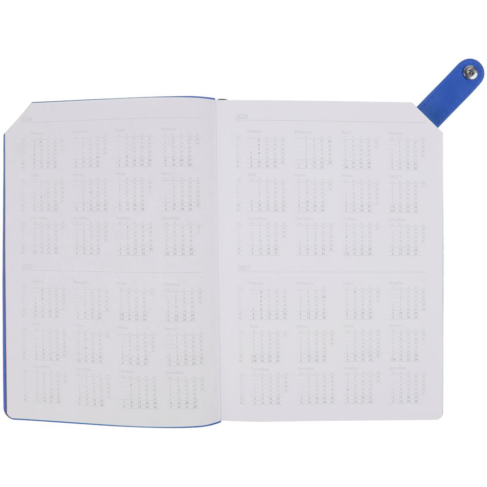 Ежедневник с гибкой обложкой и тонированным обрезом. Выполнен из материала Latte, синий НН, дополнен черным ляссе.
