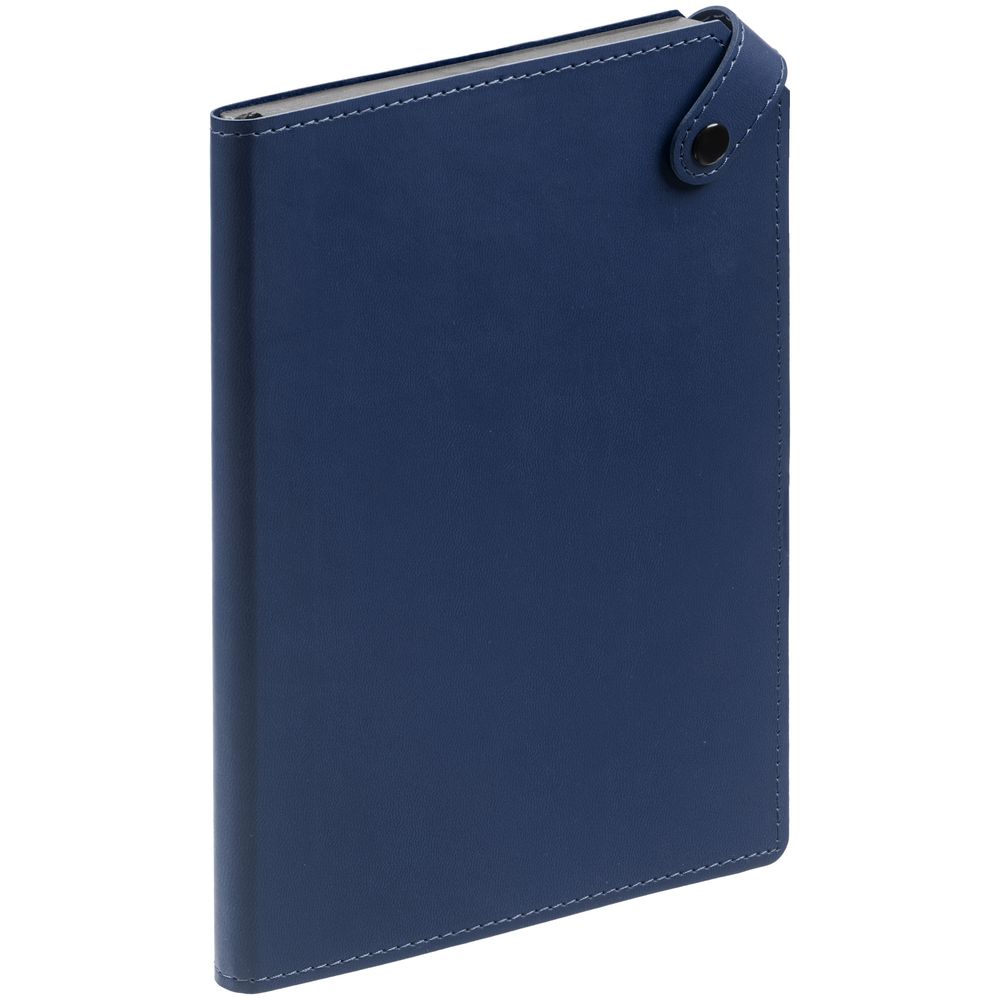 Ежедневник с гибкой обложкой и тонированным обрезом. Выполнен из материала Latte, темно-синий ХХ, дополнен черным ляссе.