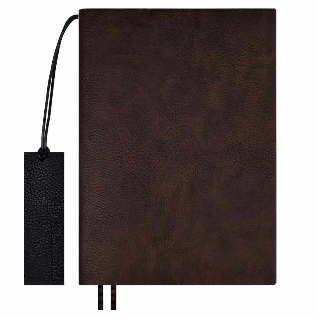 Ежедневник с гибкой обложкой и закладкой из искусственной кожи, дополнен капталом и двойным ляссе.