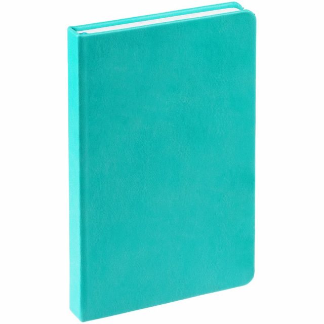 Ежедневник с твердой обложкой, выполнен из материала Latte, цвет морской волны II, дополнен ляссе в цвет обложки.