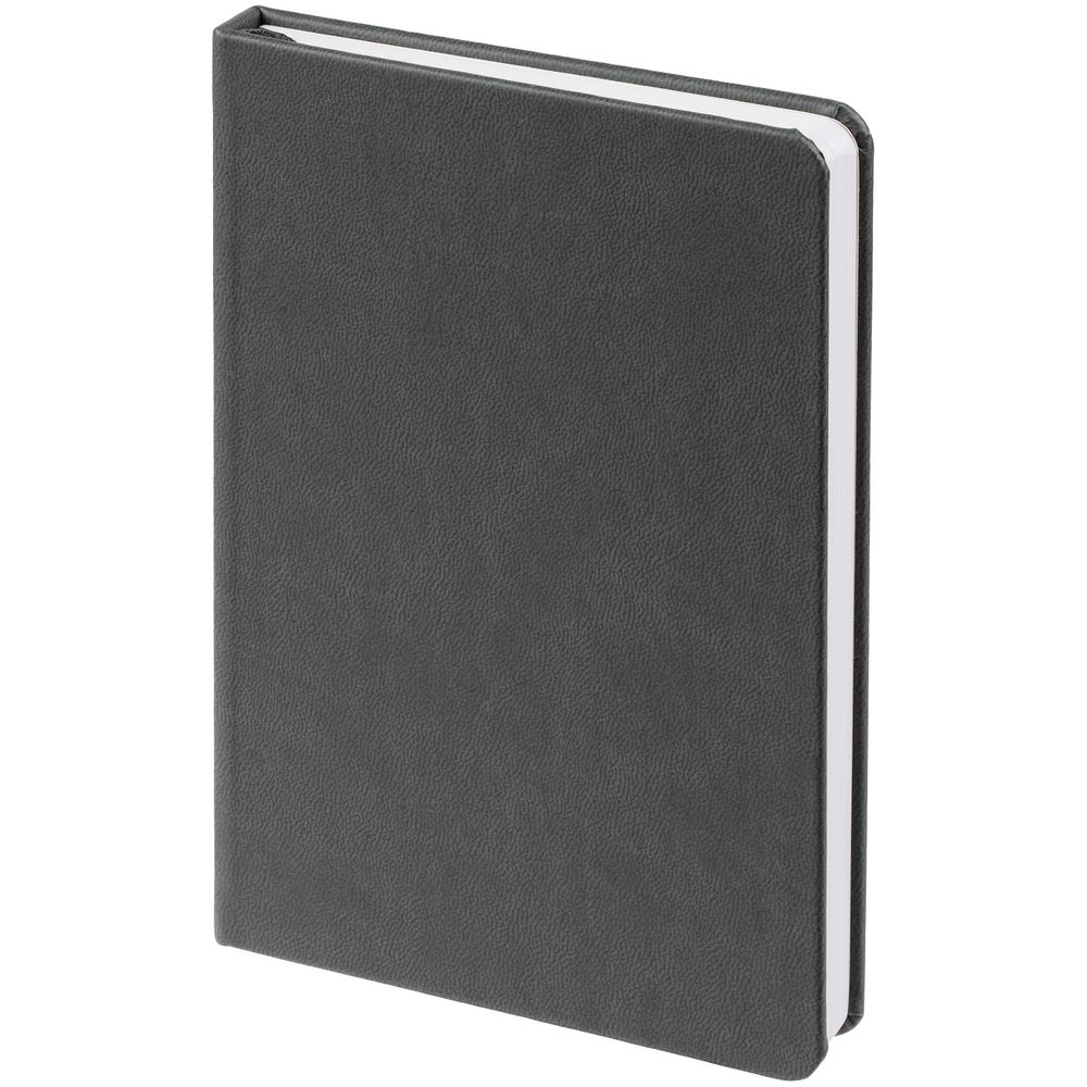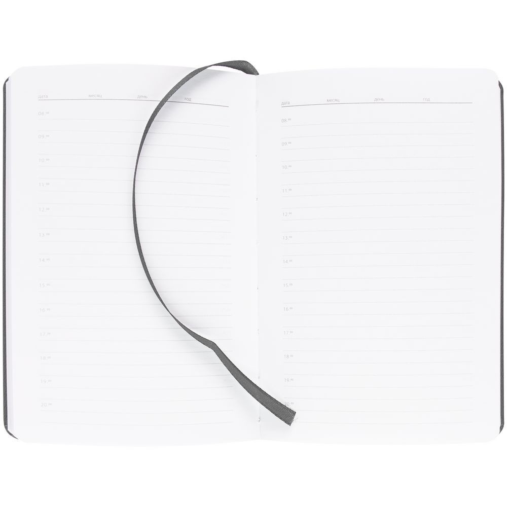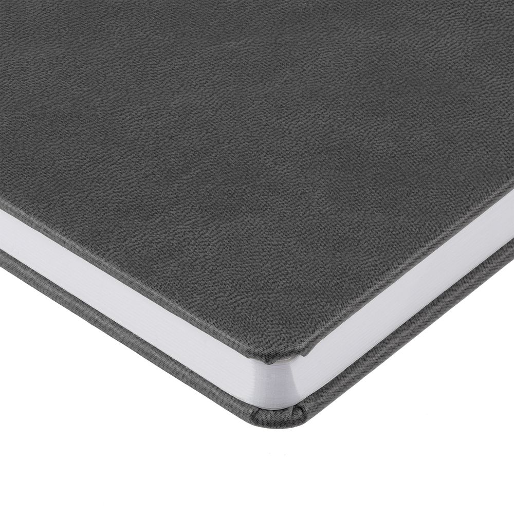 Ежедневник с твердой обложкой, выполнен из материала Latte, темно-серый ЕЕ, дополнен ляссе в цвет обложки.