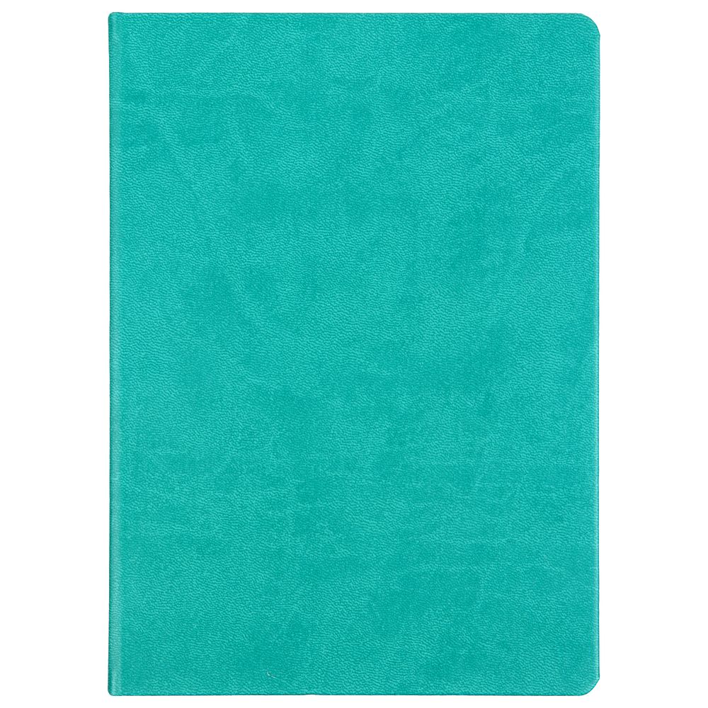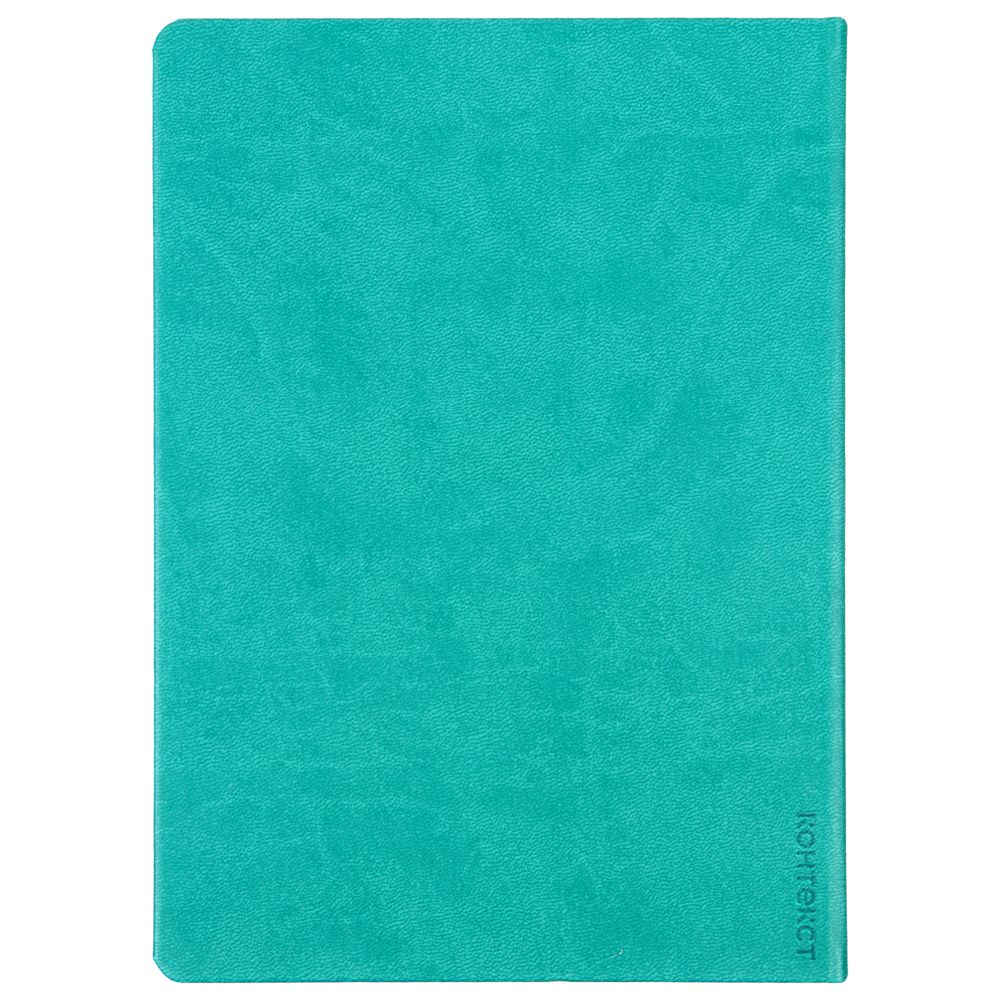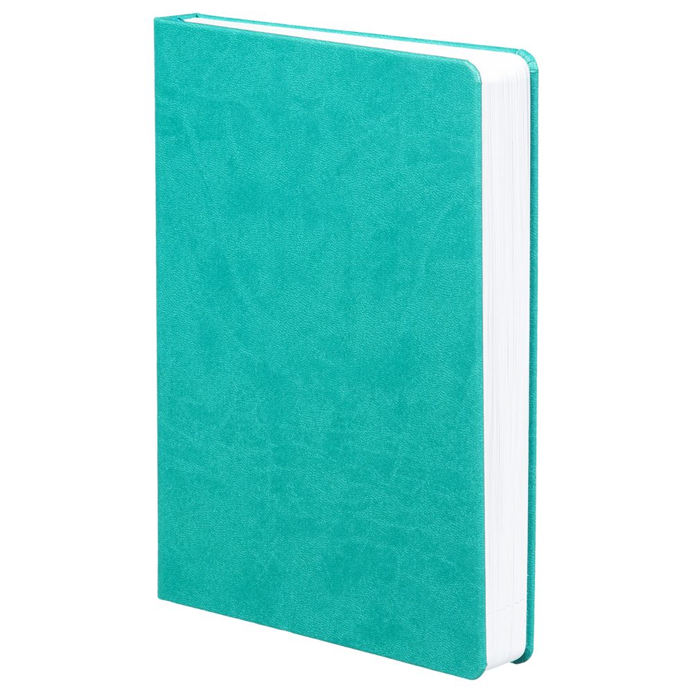 Ежедневник с твердой обложкой, выполнен из материала Latte, цвет морской волны II, дополнен ляссе в цвет обложки.