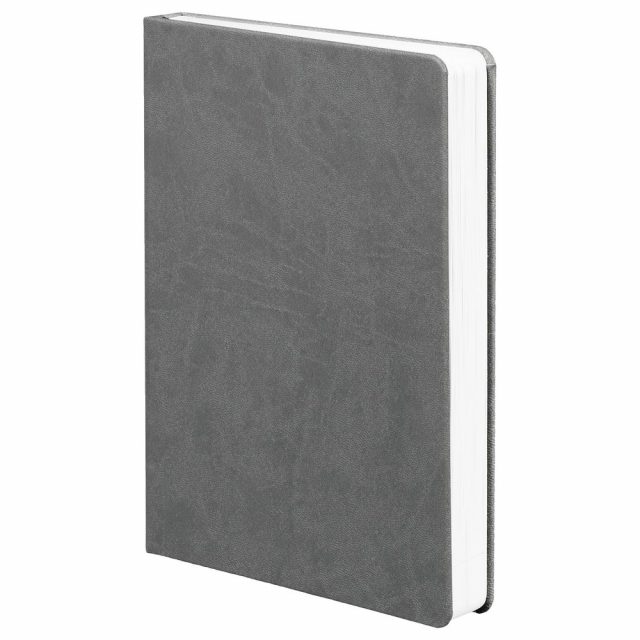 Ежедневник с твердой обложкой, выполнен из материала Latte, темно-серый ЕЕ, дополнен ляссе в цвет обложки.