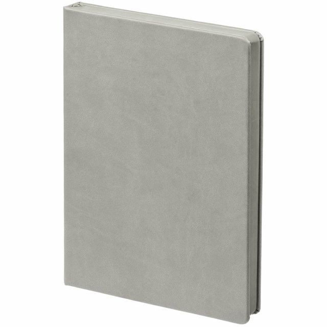 Ежедневник с твердой обложкой и тонированным обрезом. Выполнен из материала Latte, серый, дополнен ляссе в цвет обложки.
