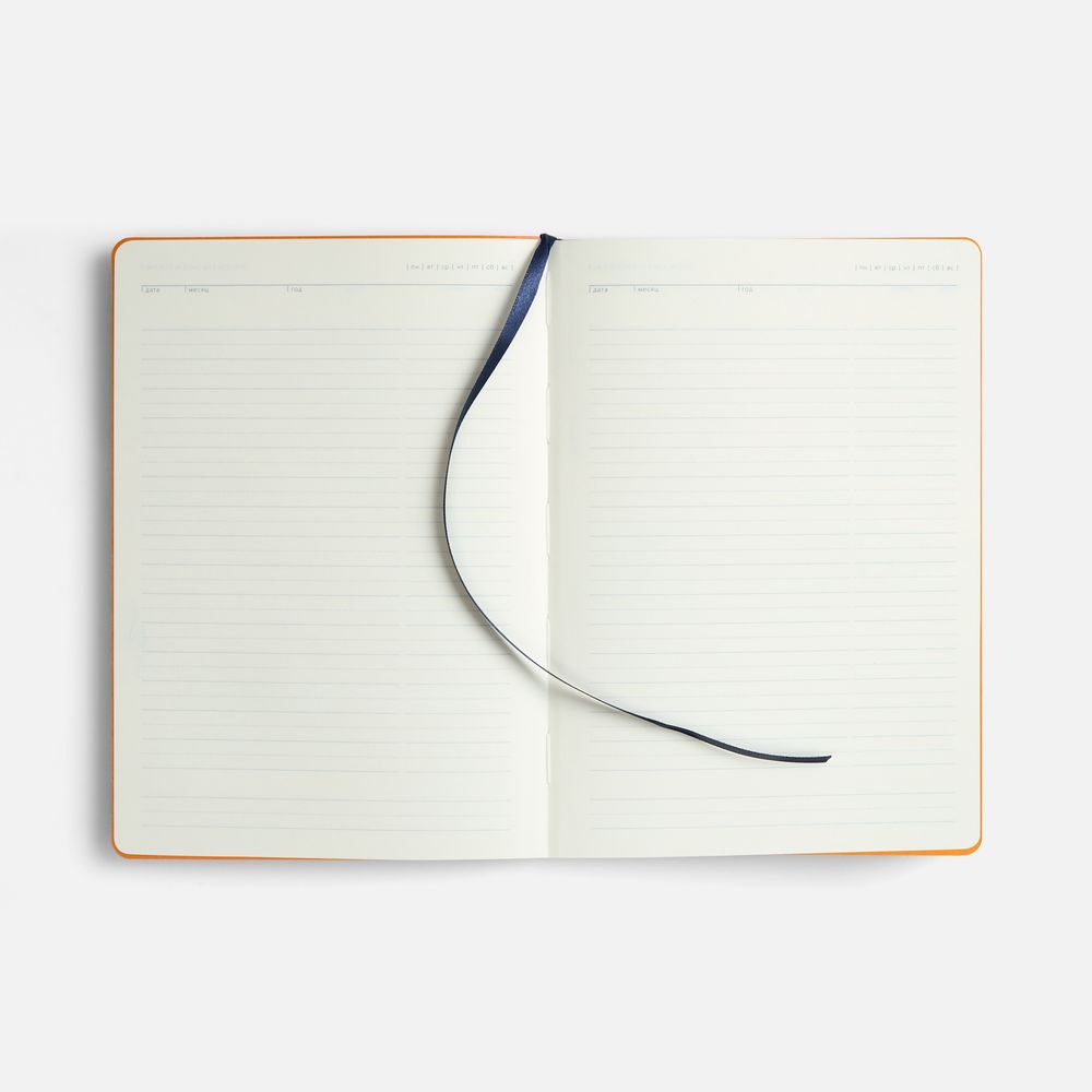 Ежедневник с гибкой обложкой, выполнен из материала Cowhide, дополнен ляссе в цвет обложки.