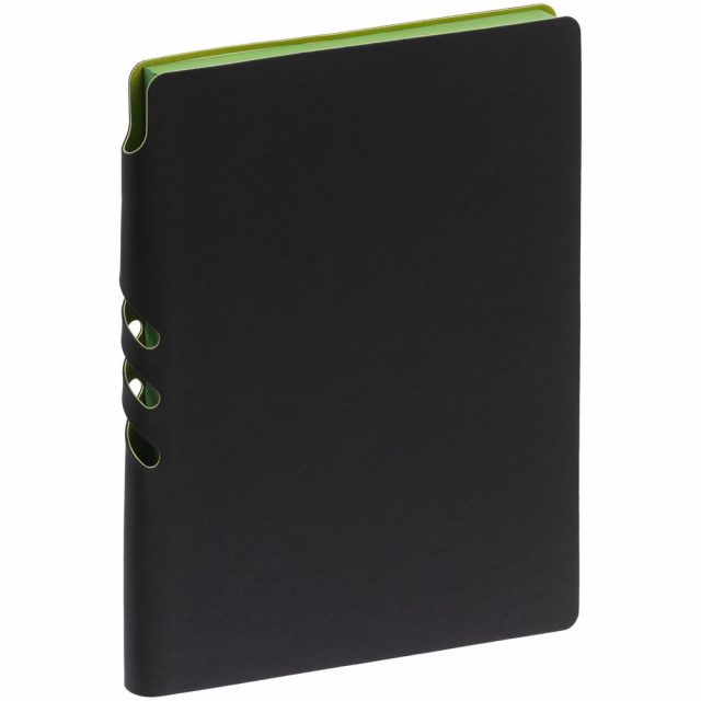 Гибкая обложка ежедневника выполнена из материала Soft Touch Pearl, черный АА и цветного Latte (внутренняя часть обложки).