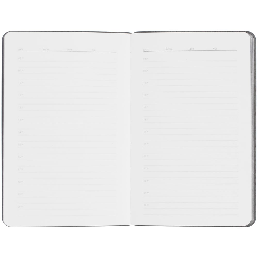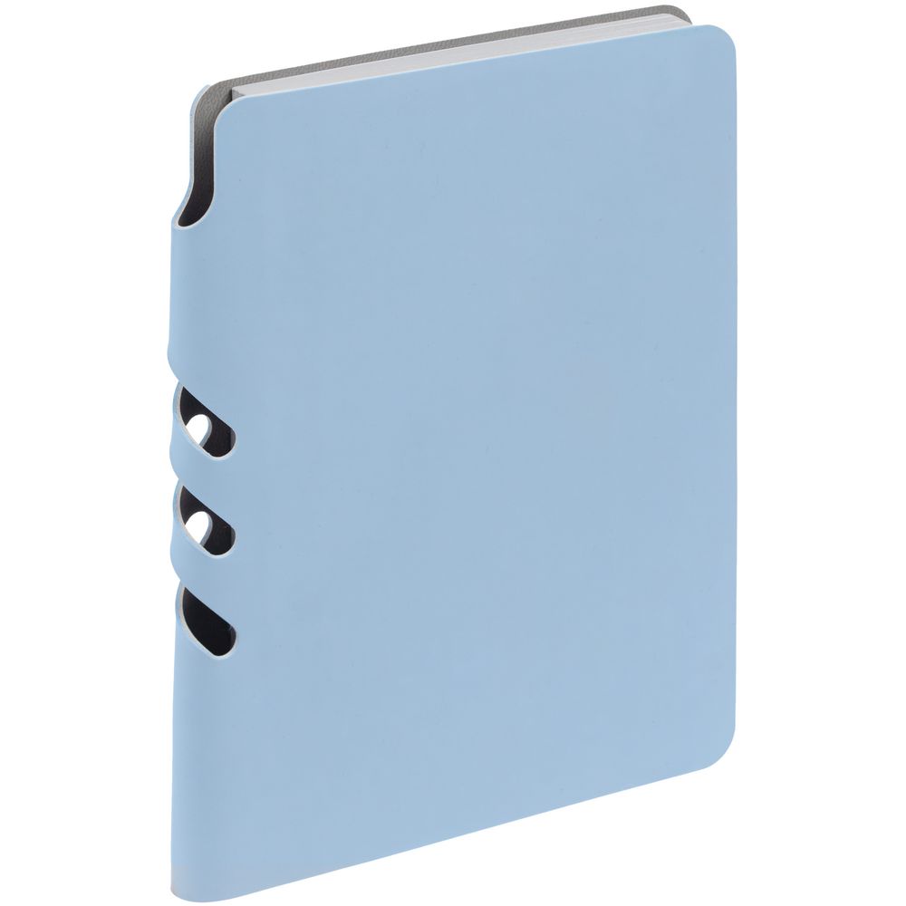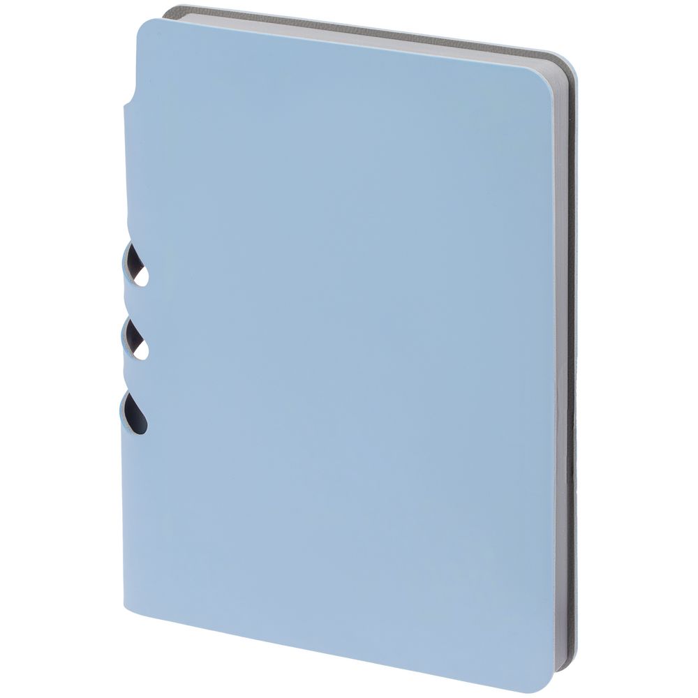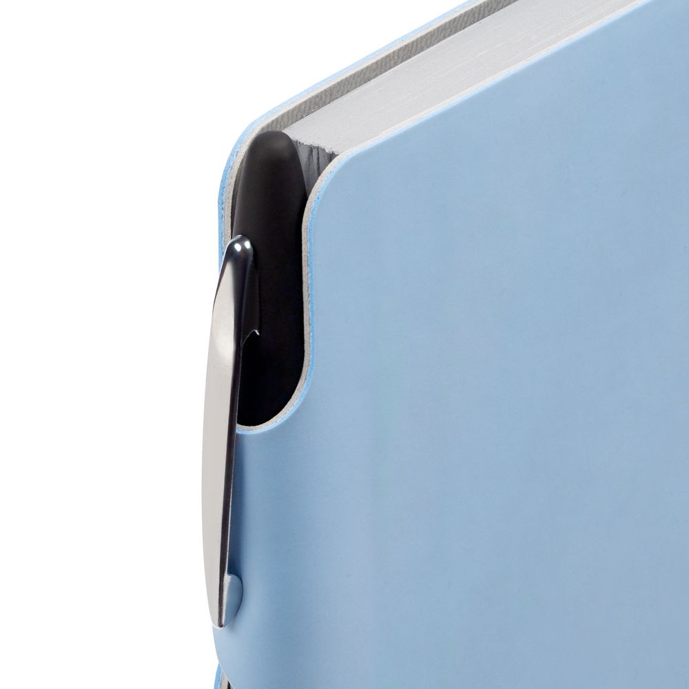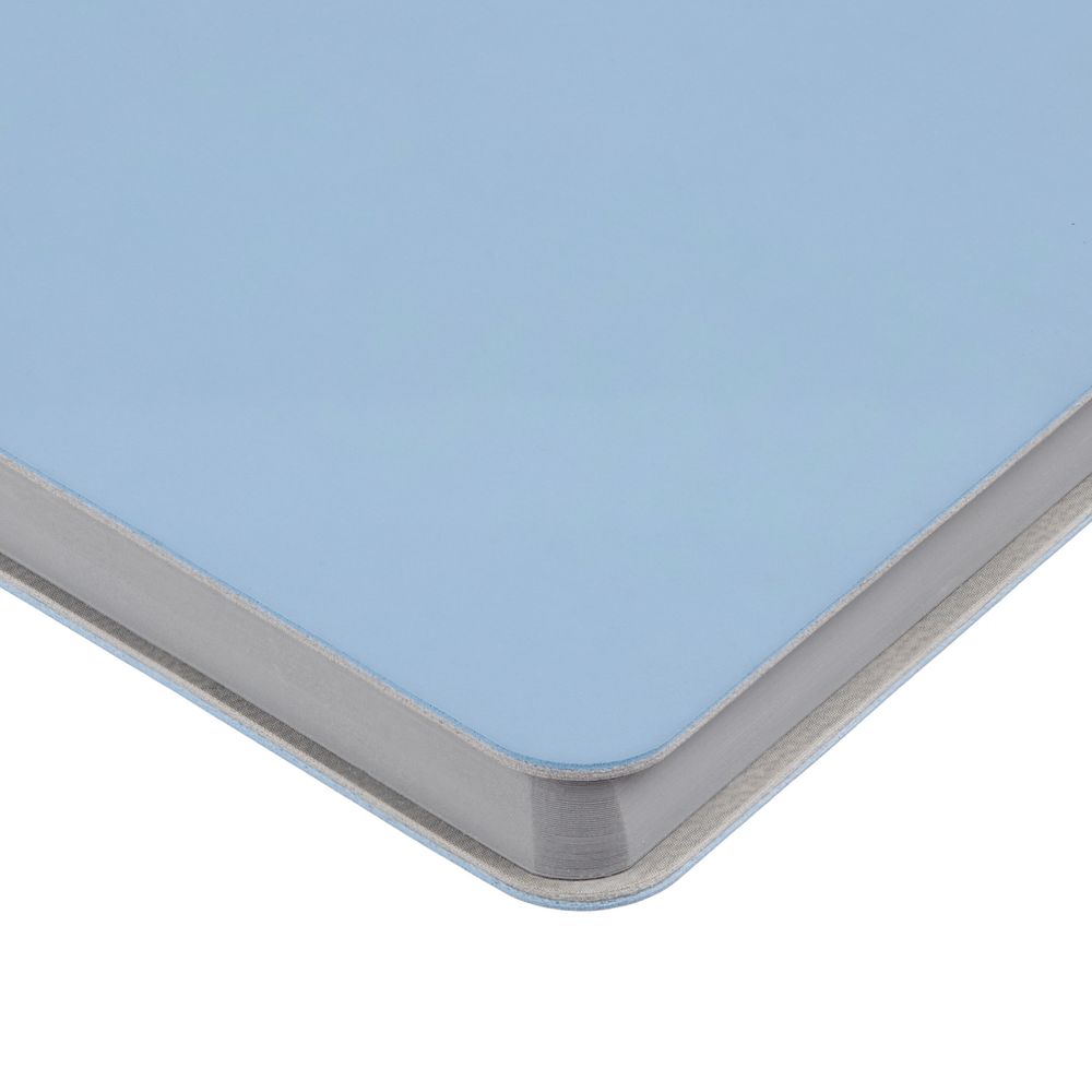 Ежедневник с гибкой обложкой выполнен из материала Soft Touch, голубой JJ и серого Latte (внутренняя часть обложки).