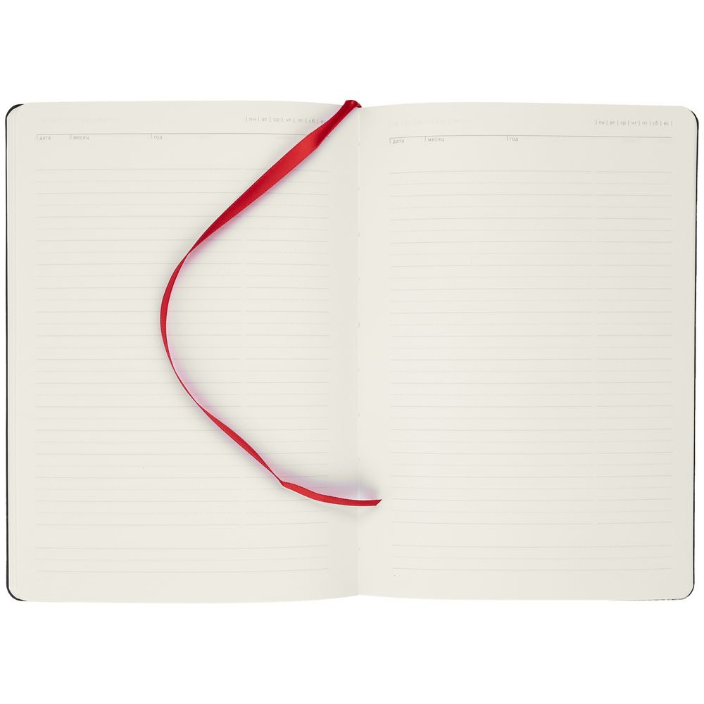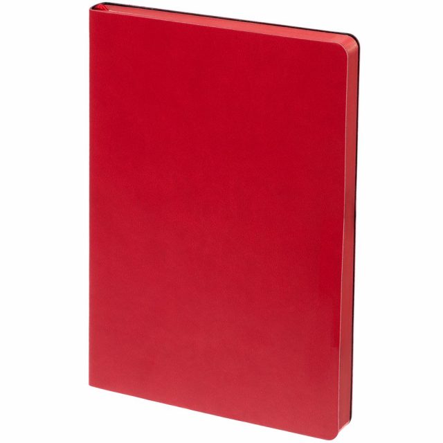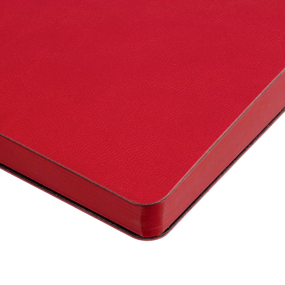 Ежедневник с гибкой обложкой, выполнен из материала Latte, красный, дополнен ляссе в цвет обложки.