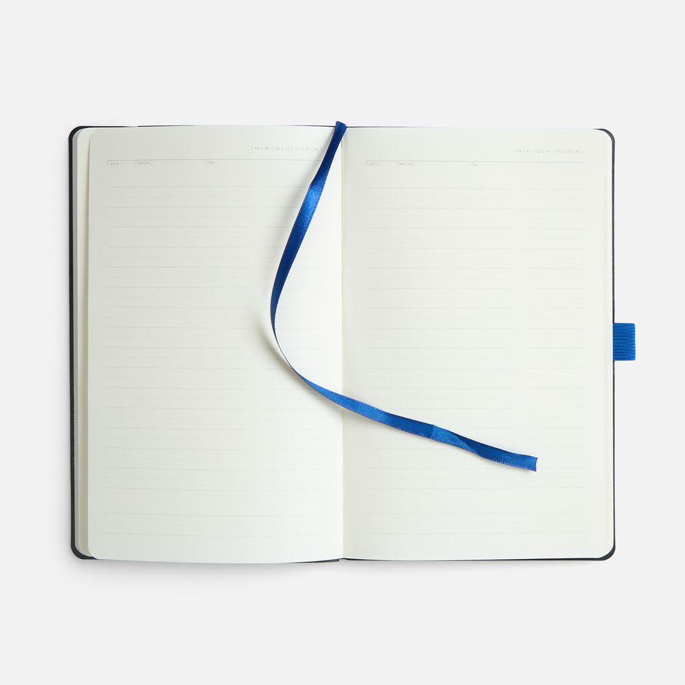 Ежедневник с гибкой обложкой, выполнен из материала Espresso, дополнен цветными ляссе и петлей-резинкой для ручки.