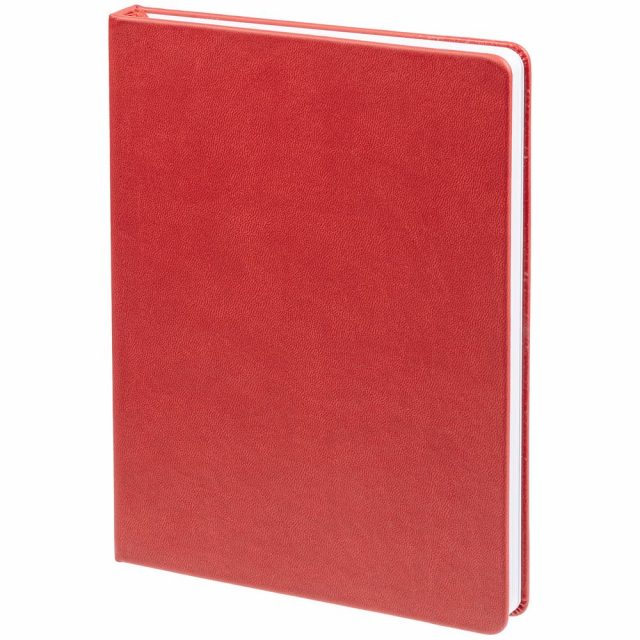 Ежедневник с твердой обложкой. Выполнен из материала Latte, красный, дополнен ляссе в цвет обложки.