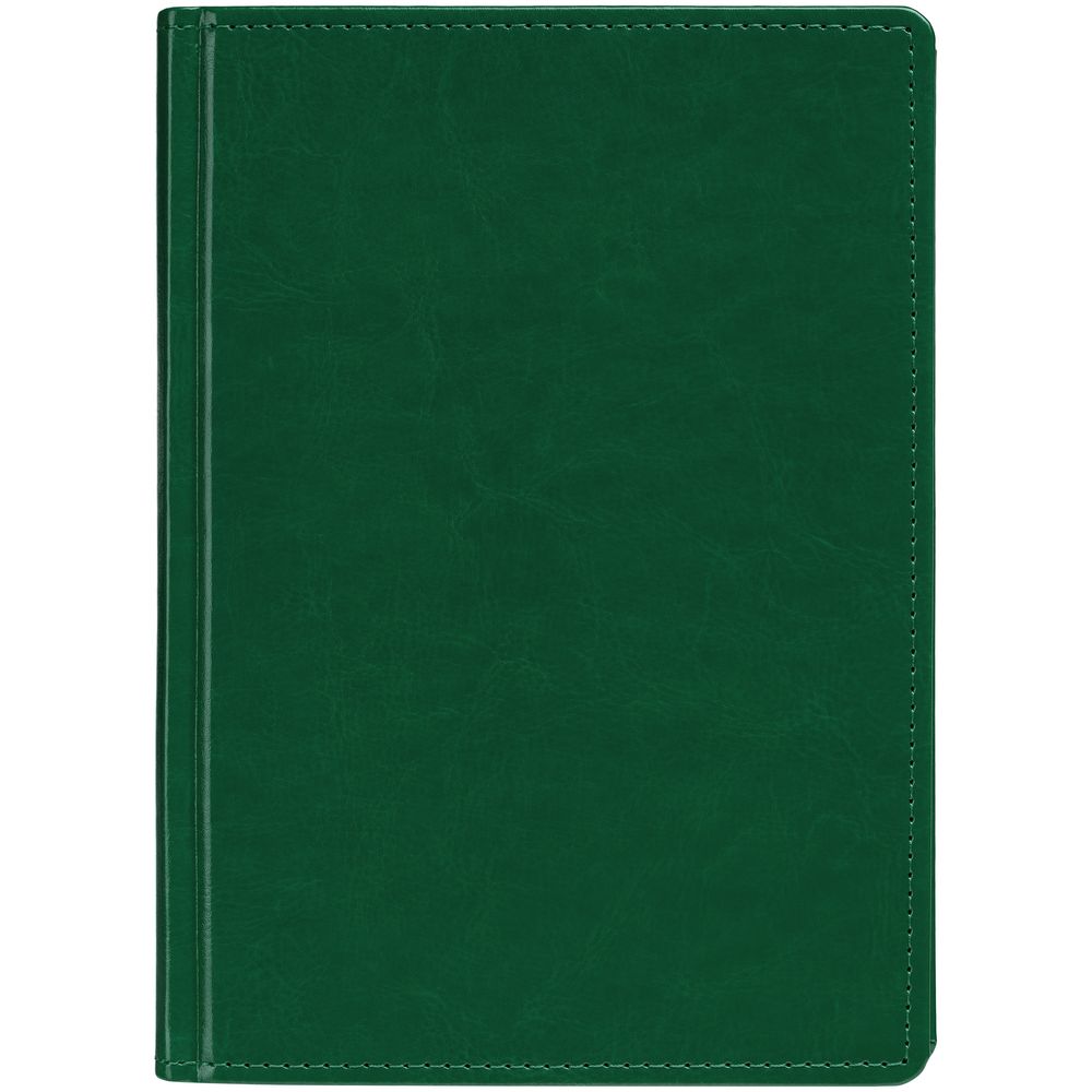 Ежедневник с твердой обложкой без поролона, выполнен из материала Nebraska, зеленый FF, дополнен ляссе и капталом в цвет обложки.