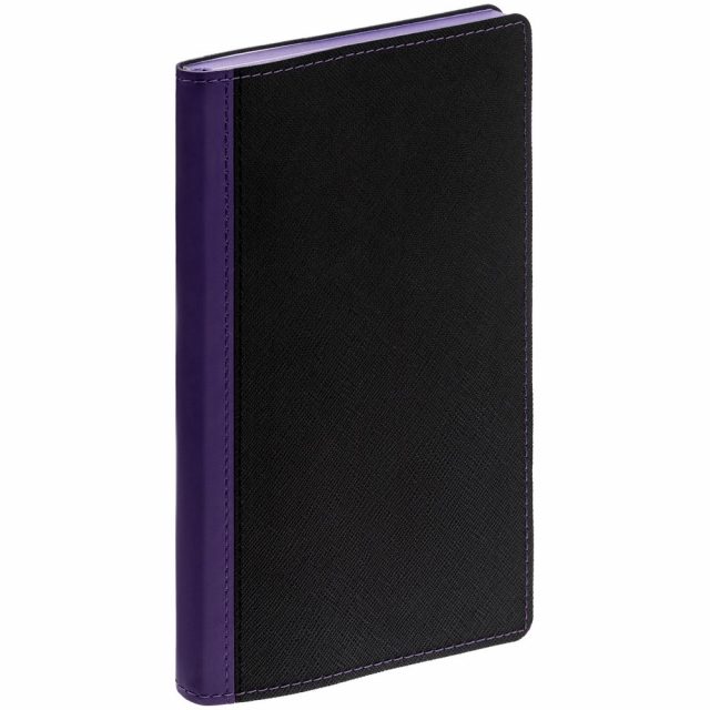 Ежедневник с гибкой обложкой выполнен из материала Nice Touch, черный АА и Soft Touch, фиолетовый UU, дополнен ляссе фиолетового цвета.