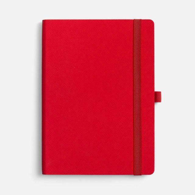 Ежедневник с гибкой обложкой, выполнен из материала Nice Touch Ultra, красный РР, дополнен цветными ляссе и петлей-резинкой для ручки.