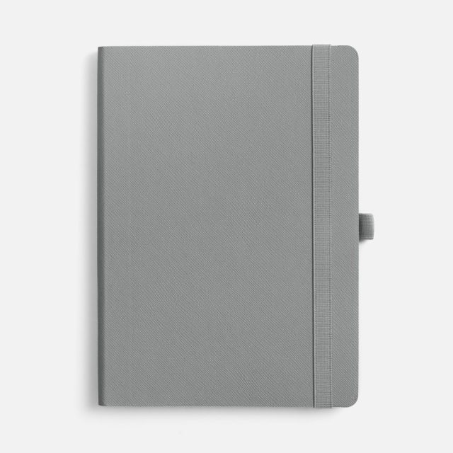 Ежедневник с гибкой обложкой, выполнен из материала Nice Touch, серый СС, дополнен цветными ляссе и петлей-резинкой для ручки.