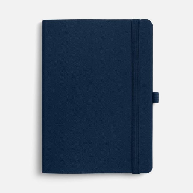 Ежедневник с гибкой обложкой, выполнен из материала Nice Touch, темно-синий ХХ, дополнен цветными ляссе и петлей-резинкой для ручки.