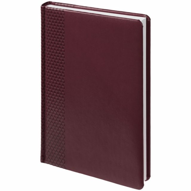 Ежедневник с твердой обложкой, выполнен из материала Waltz, бордовый QQ, дополнен ляссе в цвет материала.