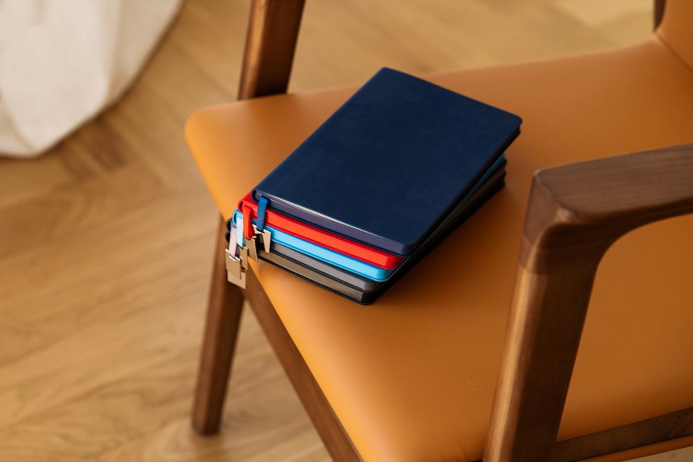 Ежедневник с гибкой обложкой, выполнен из материалов Soft Touch Pearl, оранжевый ОО, и Latte, оранжевый (внутренняя часть обложки), дополнен ляссе в цвет обложки с металлическим шильдиком.