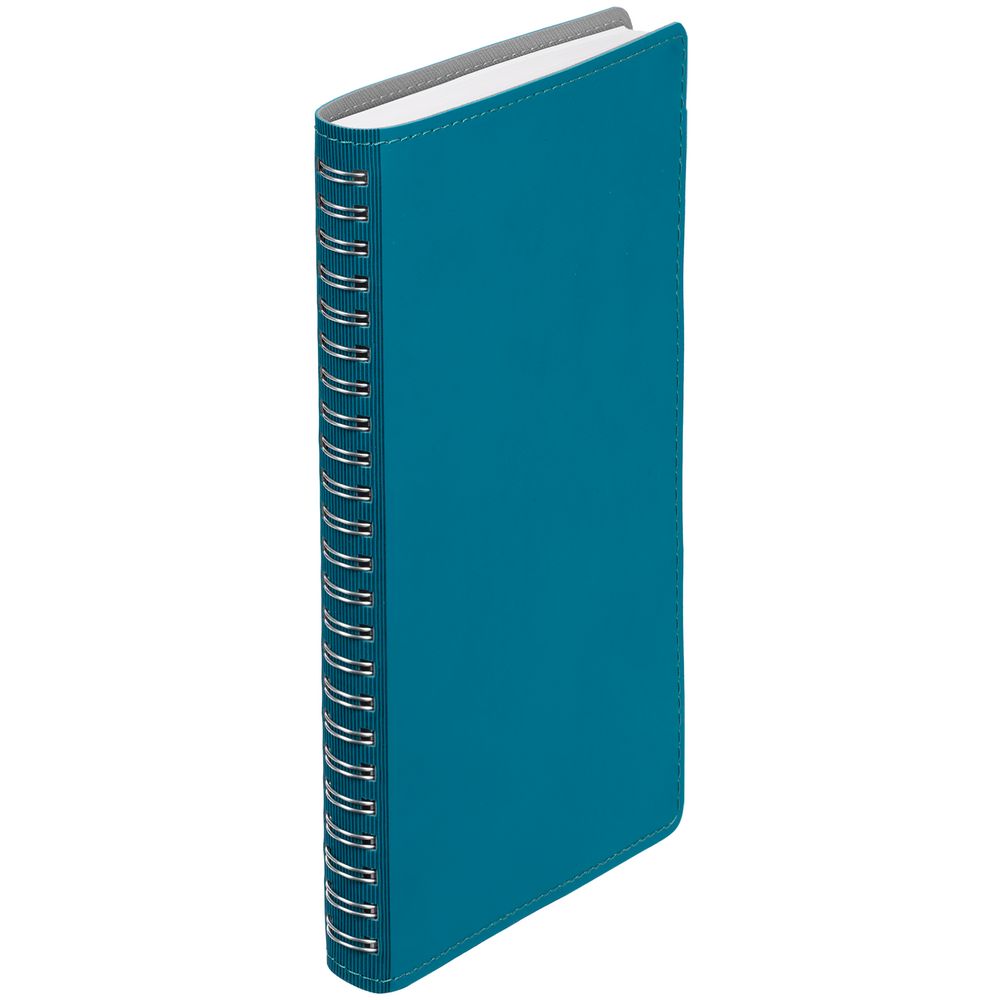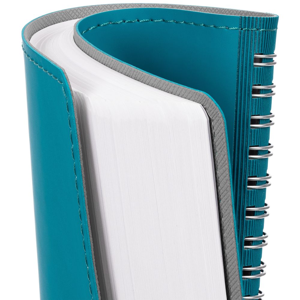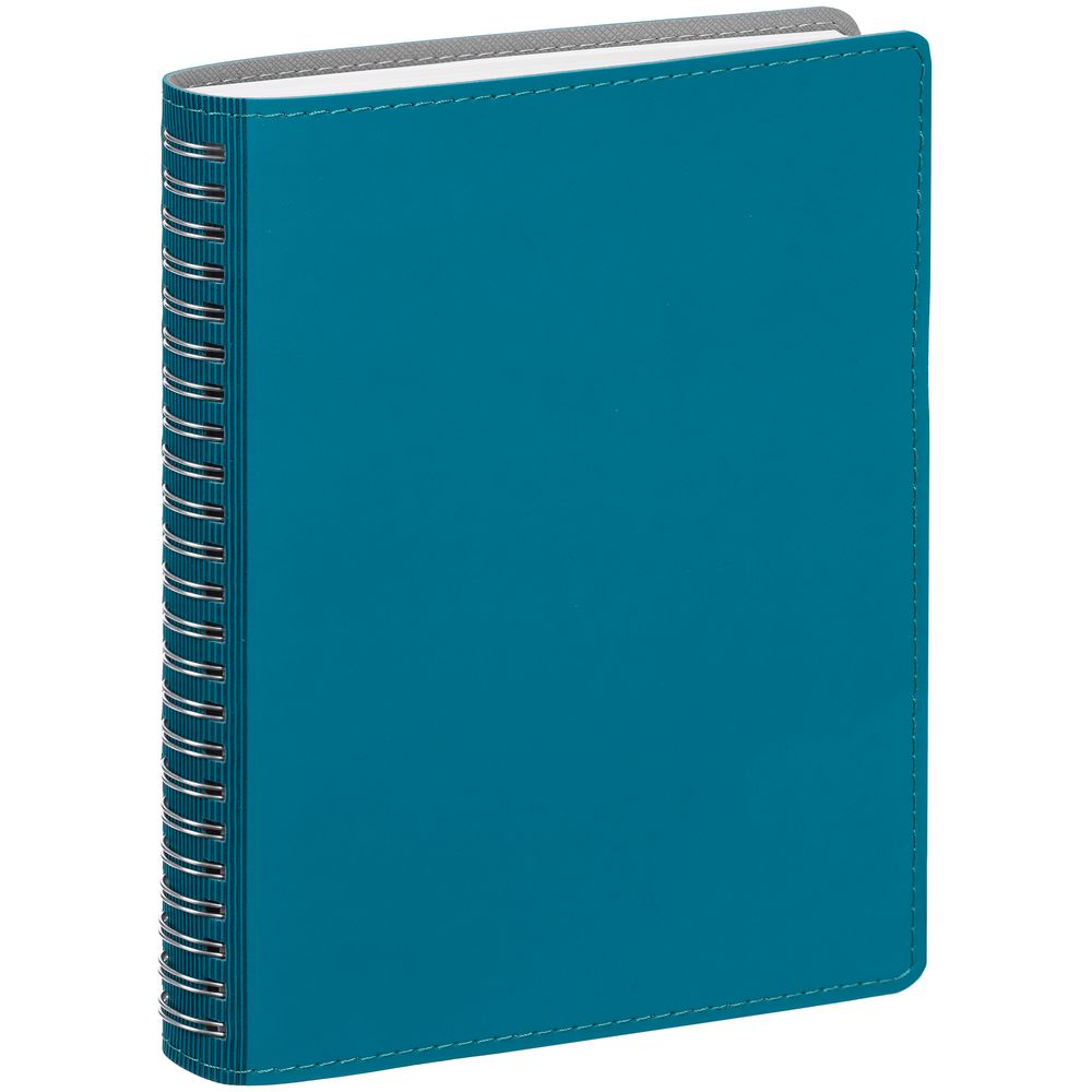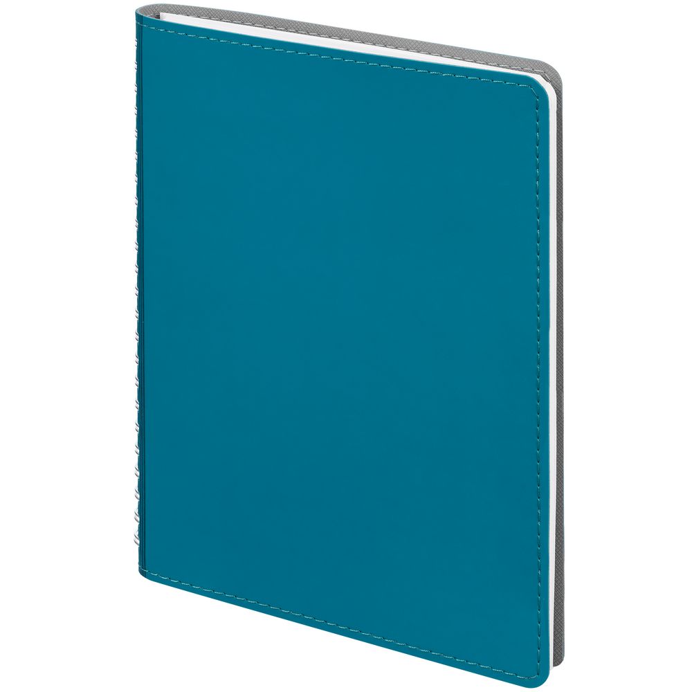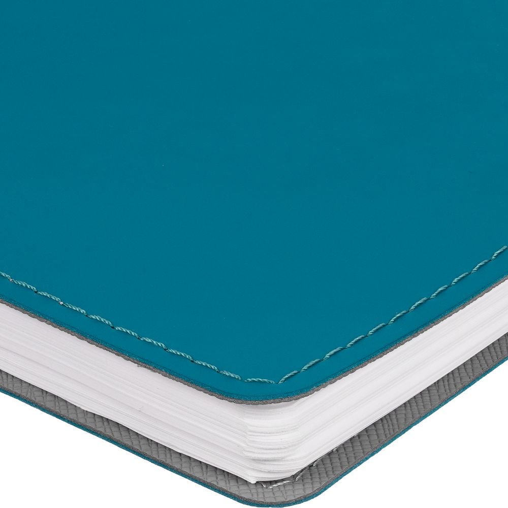 Ежедневник с гибкой обложкой, выполнен из материалов Soft Touch, цвет морской волны II и Nice touch, серый СС.